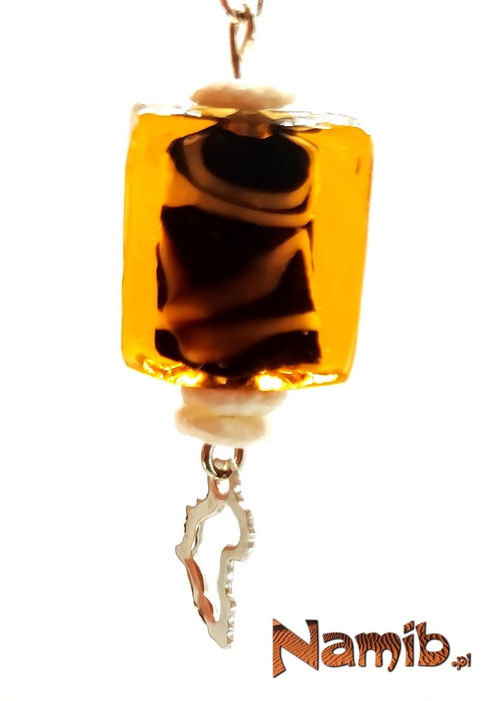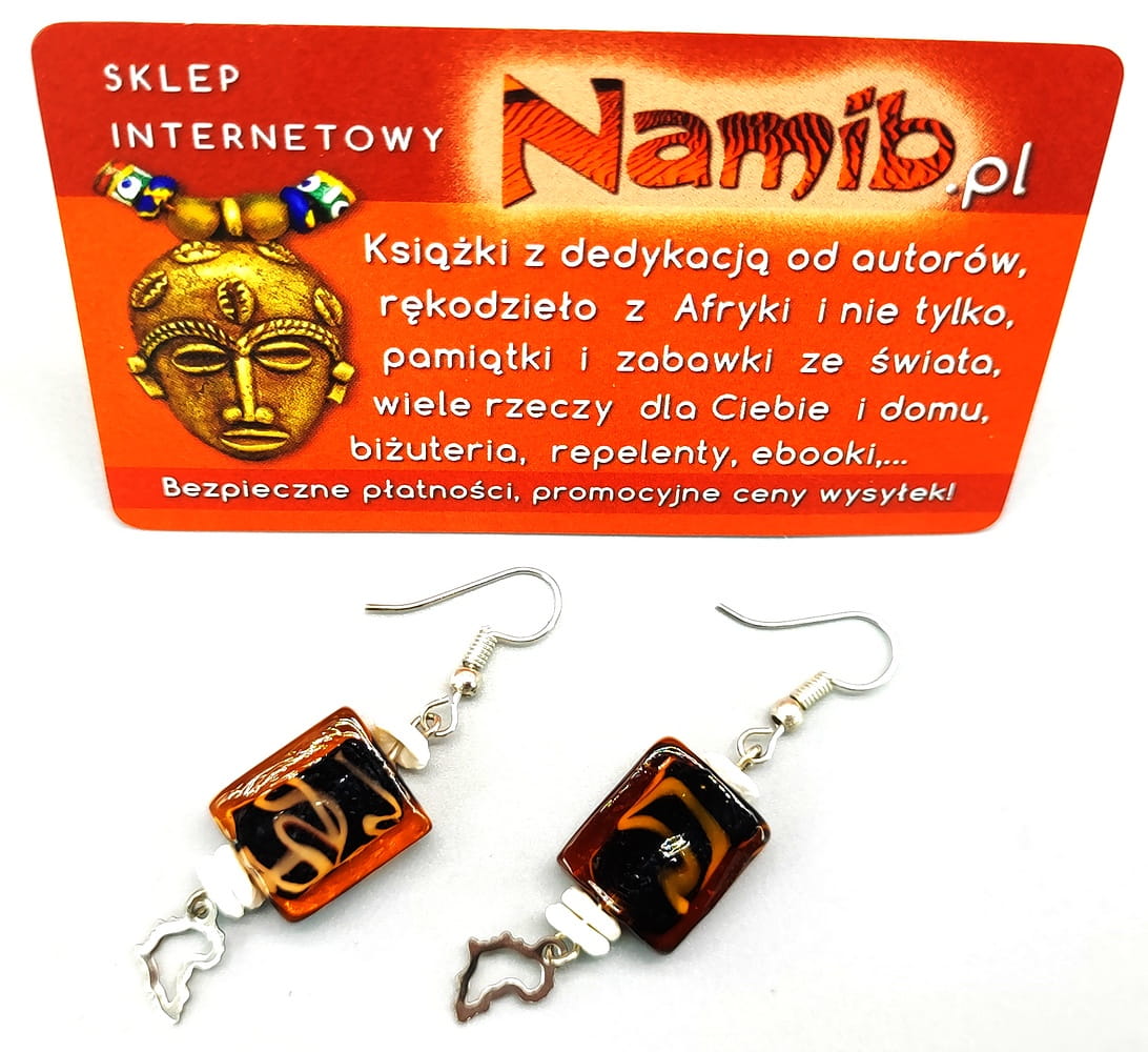 Piękne i oryginalne kolczyki z korali ze szkła, skorupek strusich jaj oraz zawieszek z Afryką.