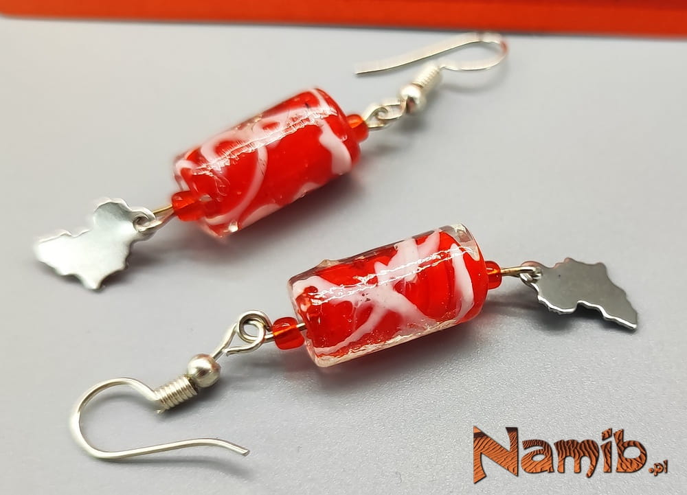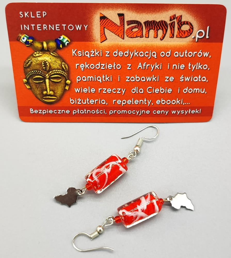 Piękne i oryginalne kolczyki ze szklanych koralików z zawieszkami Afryka.