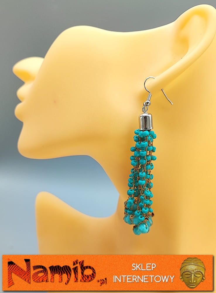 Stylowe kolczyki  wykonane z koralików nawleczonych na nitkę.