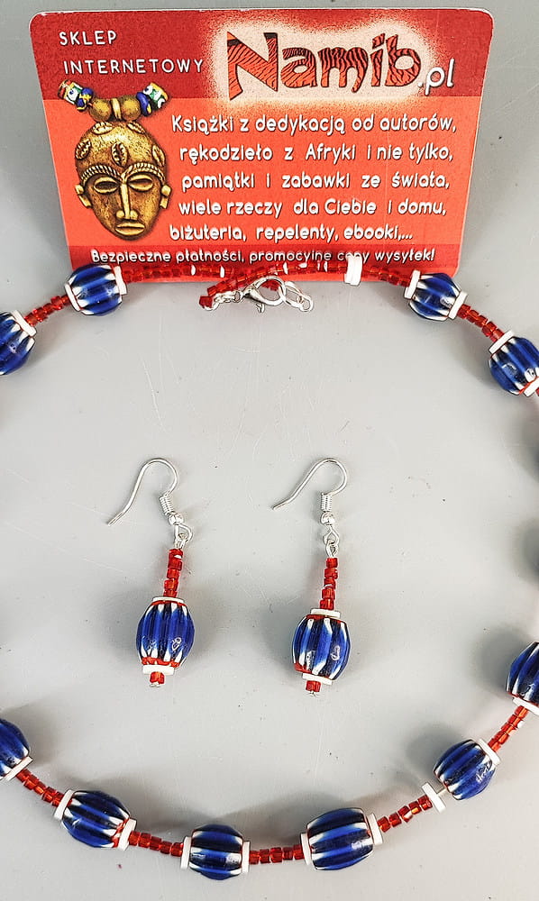 Zestaw naszyjnik, kolczyki "Afrykańska impresja" - typ Chevron - GHANA